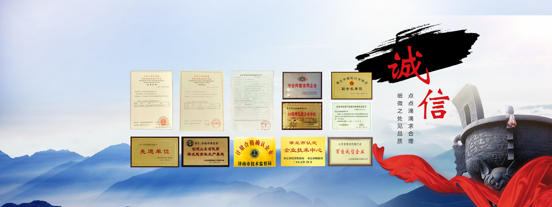 山東機械科技有限公司大成是國家質監總局認定的塔式起重機專業制造企業,位于山東省章丘區。公司自創業之初就作為輕騎集團之優秀合作伙伴,不斷發展壯大。時至今日,大成機械已形成以建筑機械、羅茨鼓風機、車輛配件、機械加工、國際貿易為一體的全方位發展集團企業。公司所有產品已通過ISO9001國際質量體系認證。        塔式起重機作為公司的主導產業,公司率先與北京建筑機械綜合研究所、山東富友公司合作,先后成功開發出具有國內同行業領先技術水平的QTZ系列自升式塔式起重機、井道電梯、塔吊、施工升降機。持有國家質監總局頒發的A級《特種設備制造許可證》。